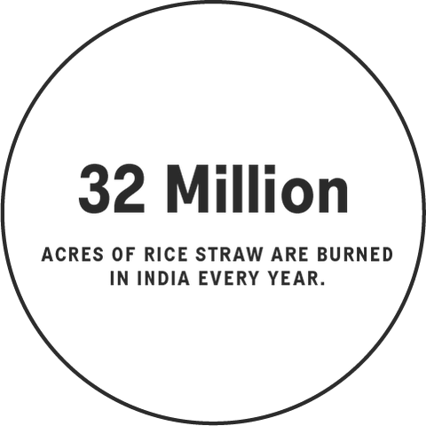 Waste is a huge problem. Crop residues are abundant, far too much to compost effectively. This waste is left to rot or burned, creating methane pollution, crop disease, and air pollution that contributes to more than 250,000 deaths per year.